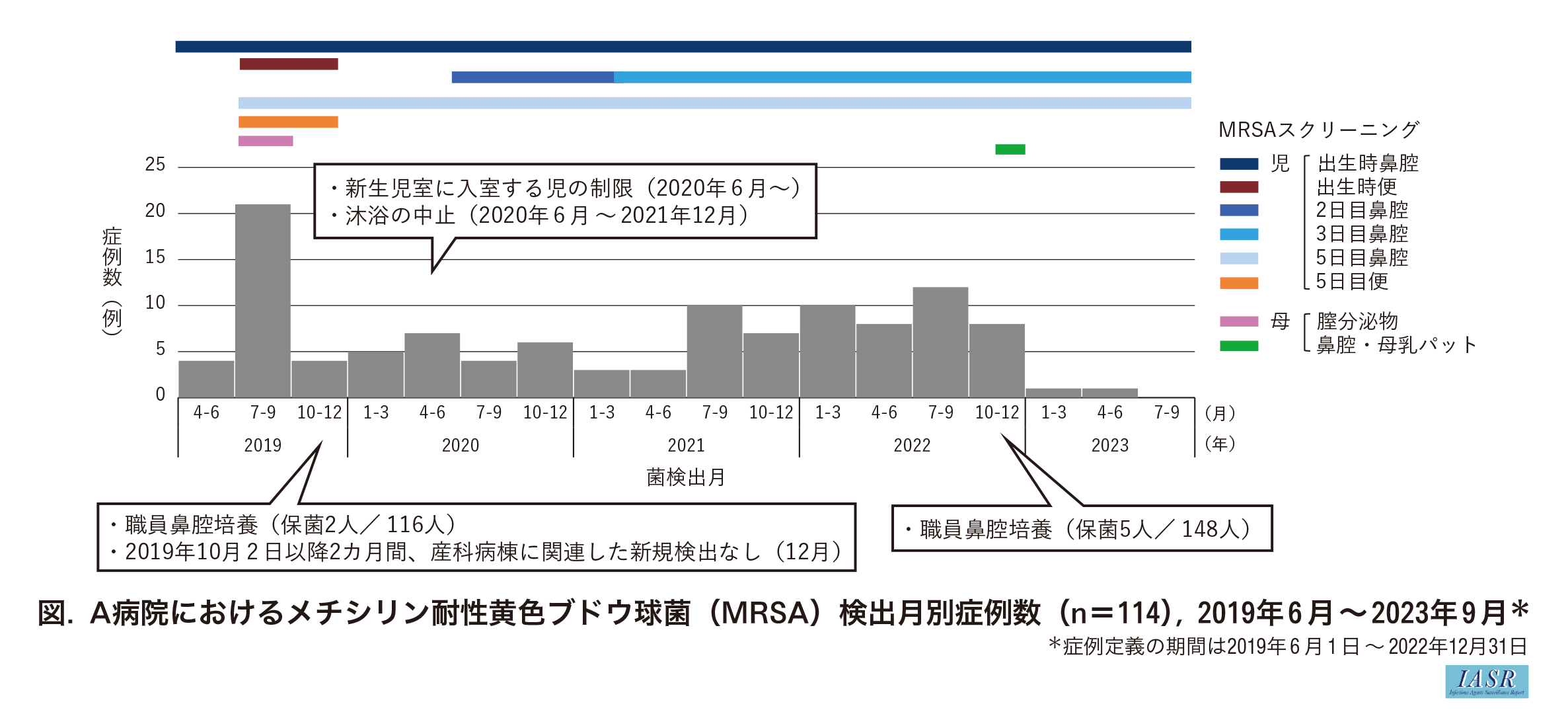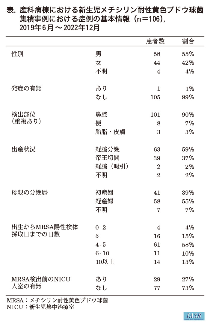 産科病棟における新生児メチシリン耐性黄色ブドウ球菌(MRSA)集積事例、2019年6月~2022年12月