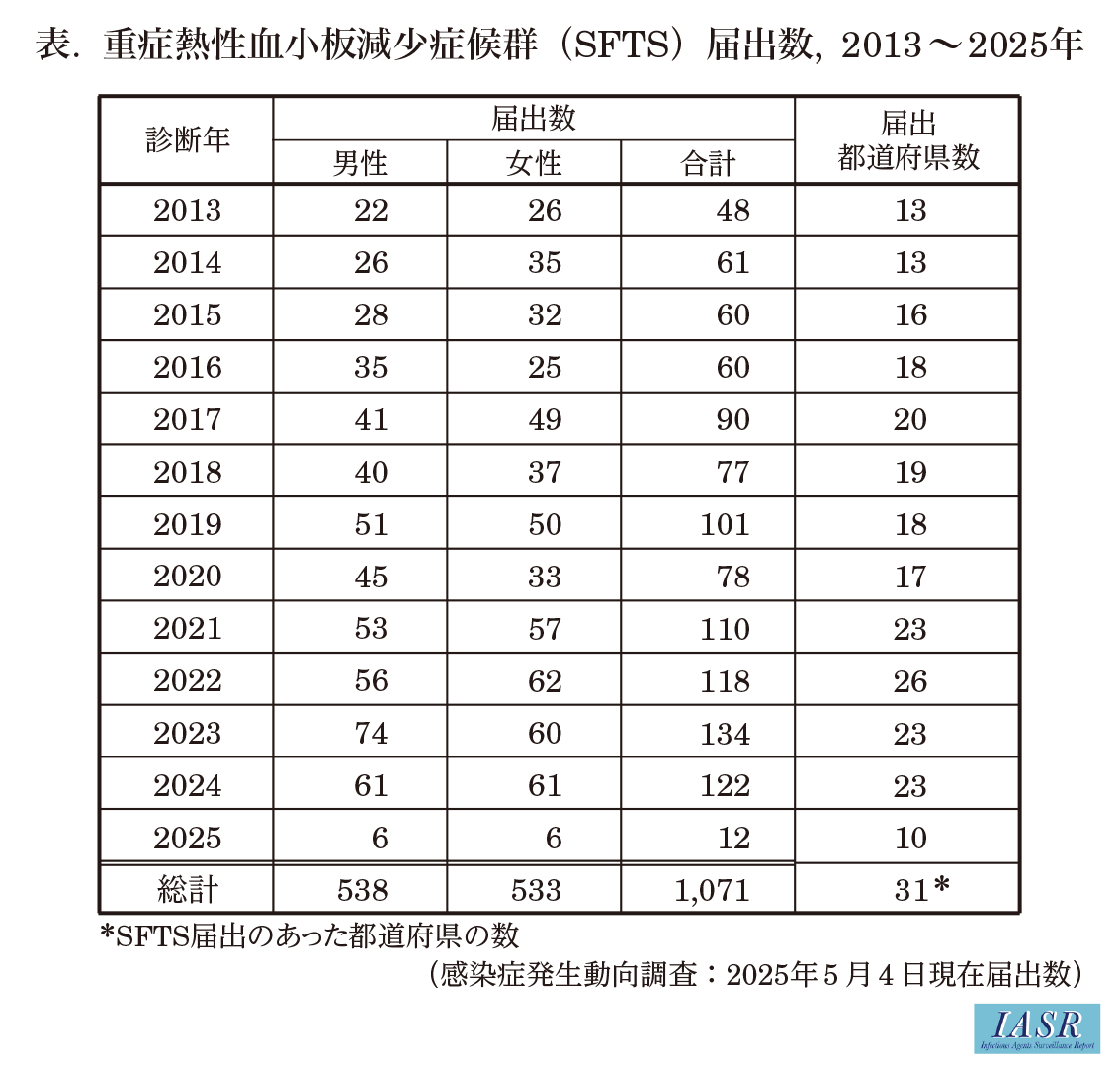 重症熱性血小板減少症候群(SFTS) 2025年5月現在