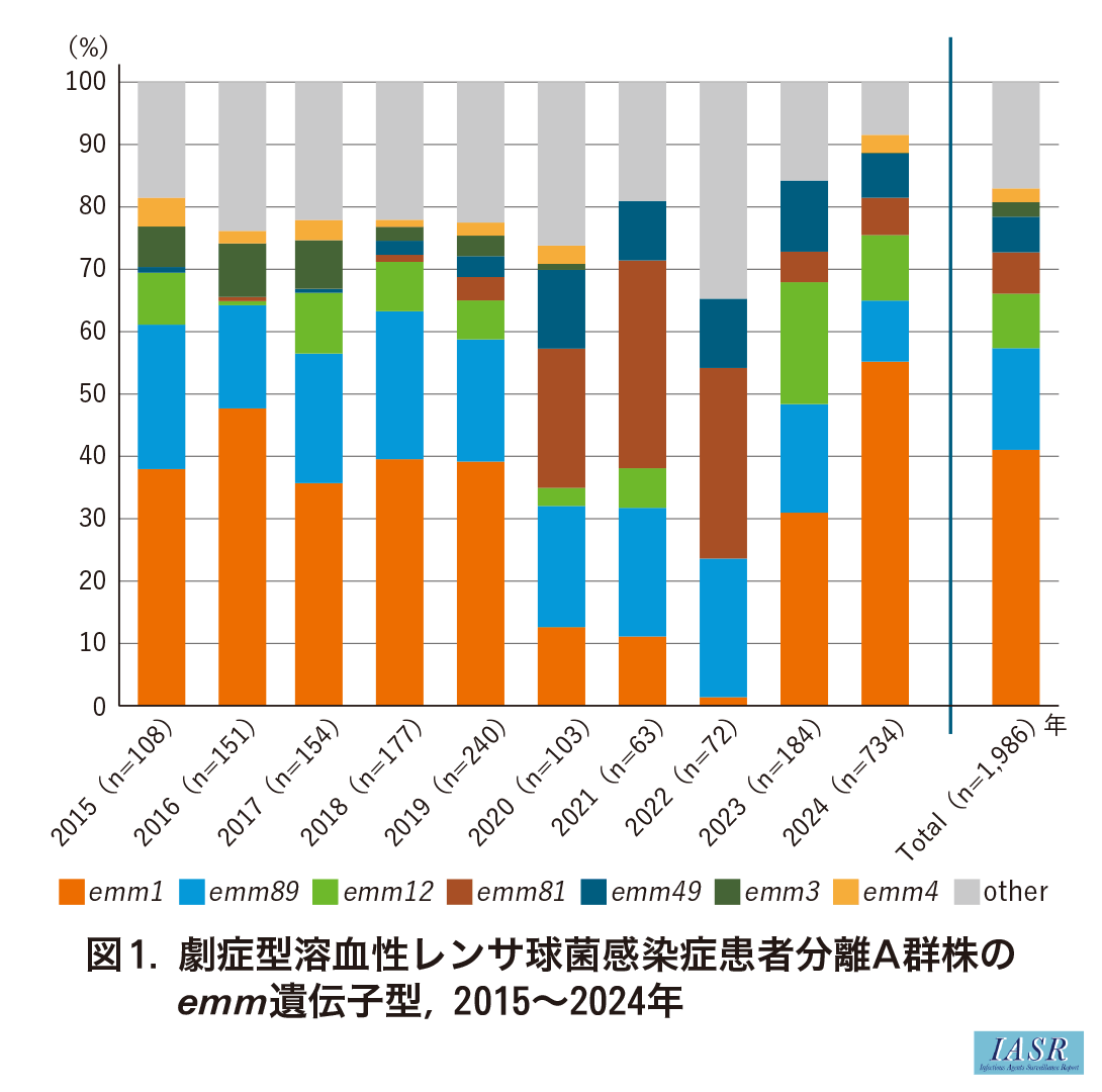 劇症型溶血性レンサ球菌感染症患者分離A群株のemm遺伝子型、2015~2024年