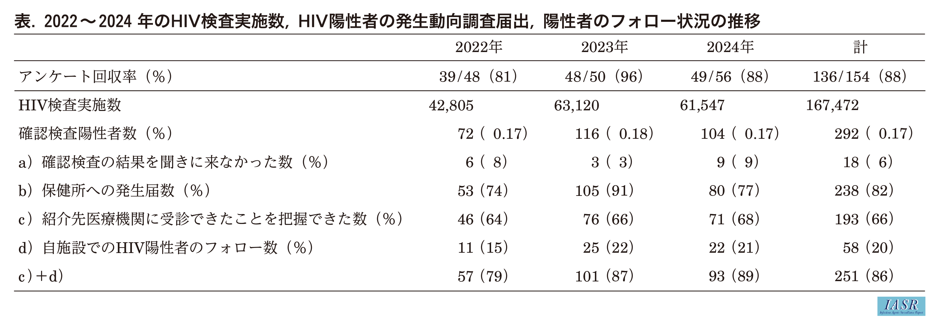 本稿では, HIV検査研究班の協力施設の民間クリニックにおける2022~2024年度の3年間の検査実施状況を分析し, その役割と課題について述べる。