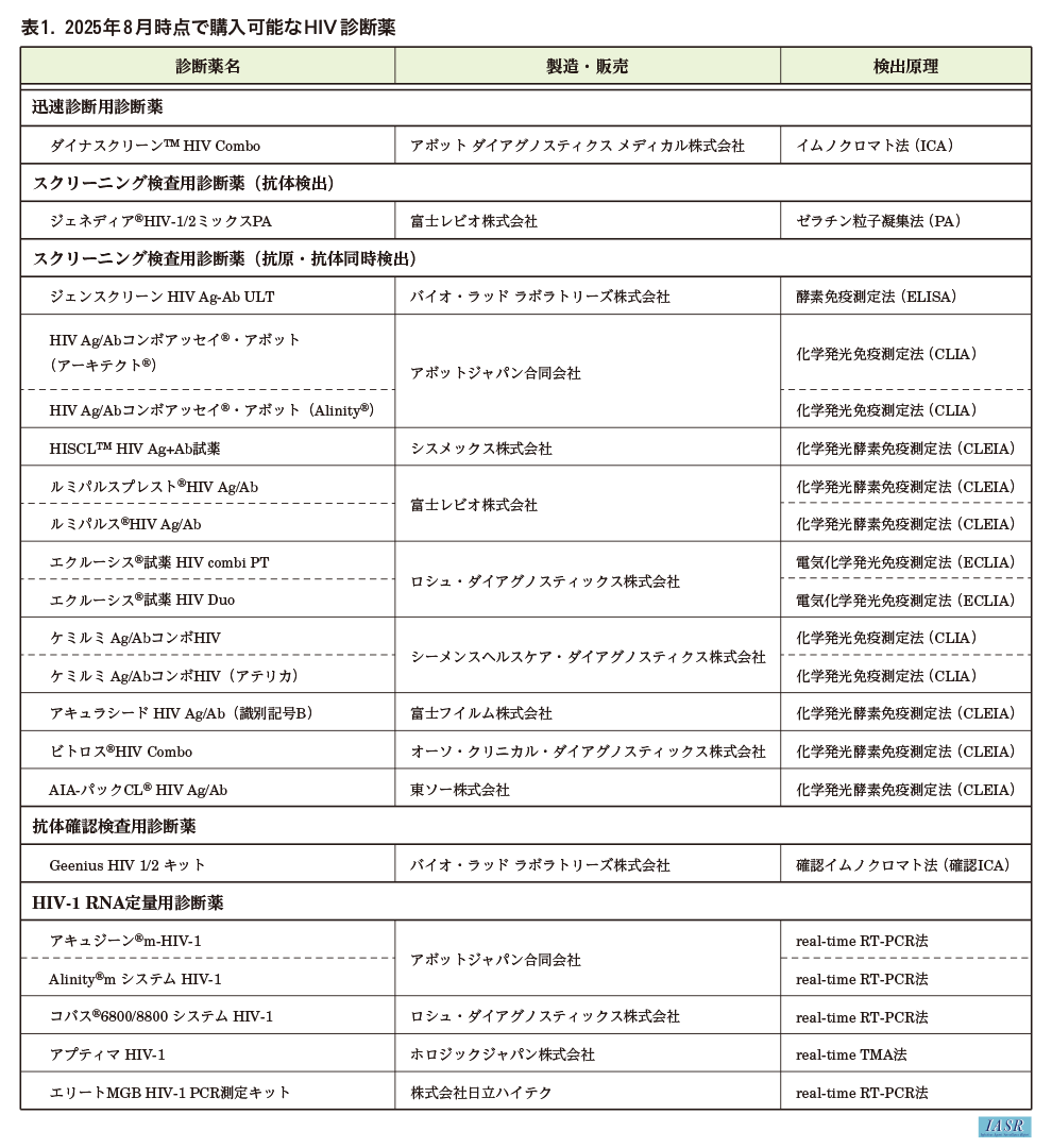 本邦において現在利用可能なHIV診断薬