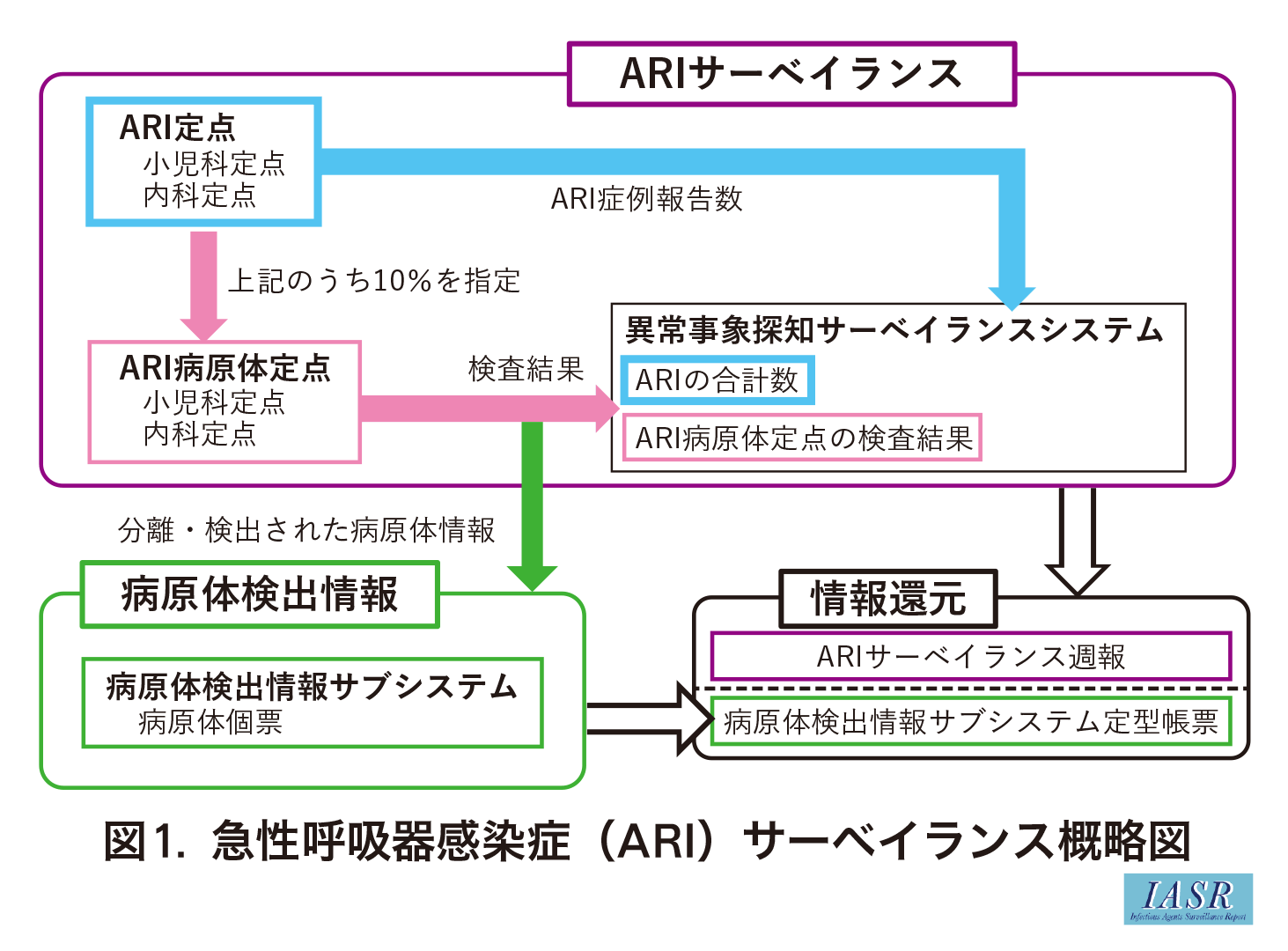 さらに「ARI病原体サーベイランス」で陽性検体から検出された病原体の型・亜型等の詳細な検出結果が「病原体検出情報サブシステム」に登録され, 集計結果が還元されている4)(図1)。