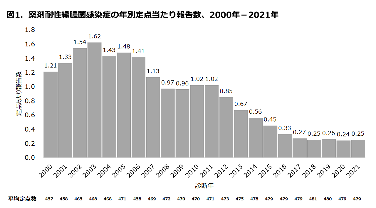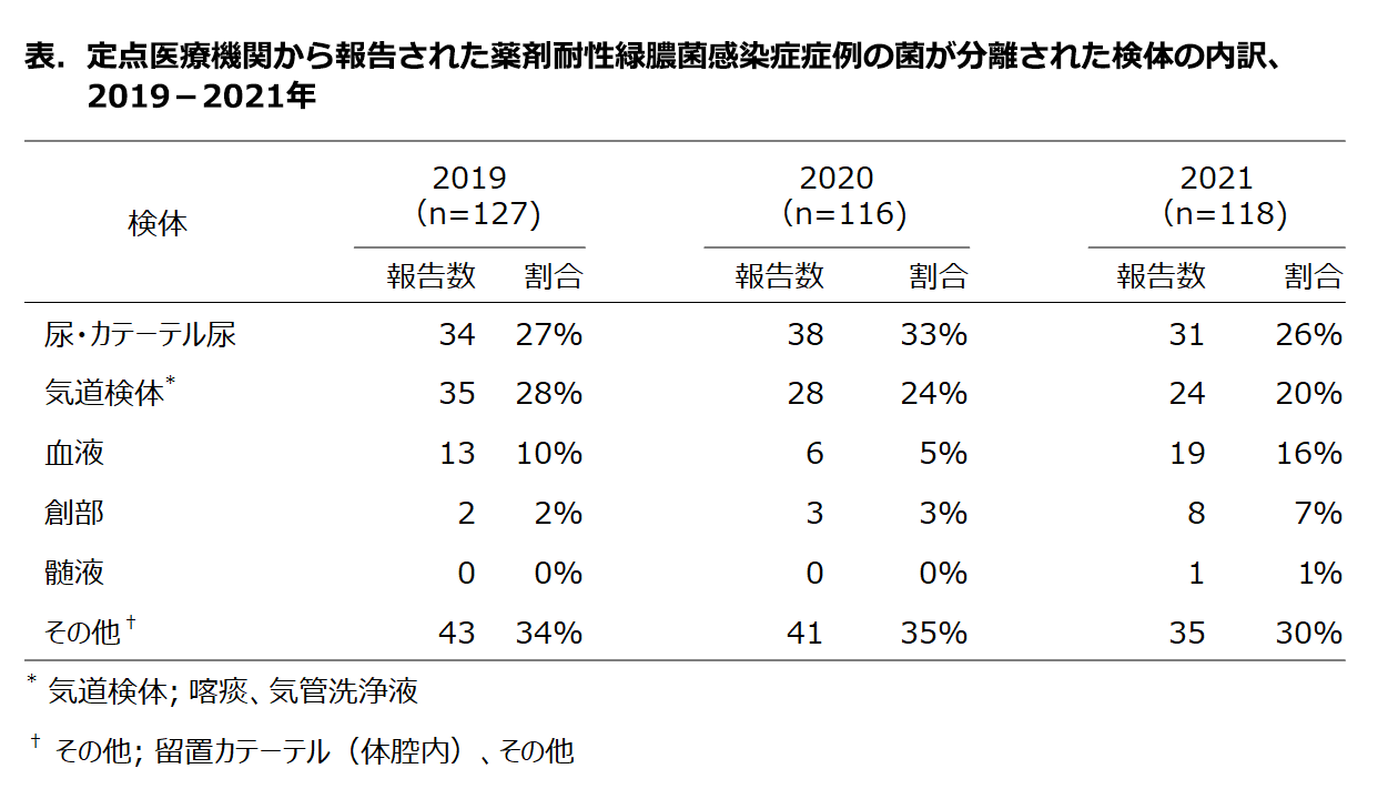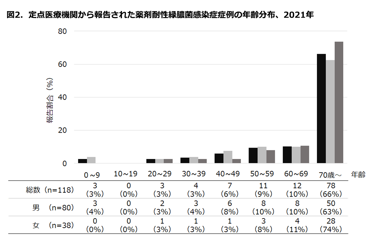 感染症法に基づく薬剤耐性緑膿菌感染症の届出状況、2021年