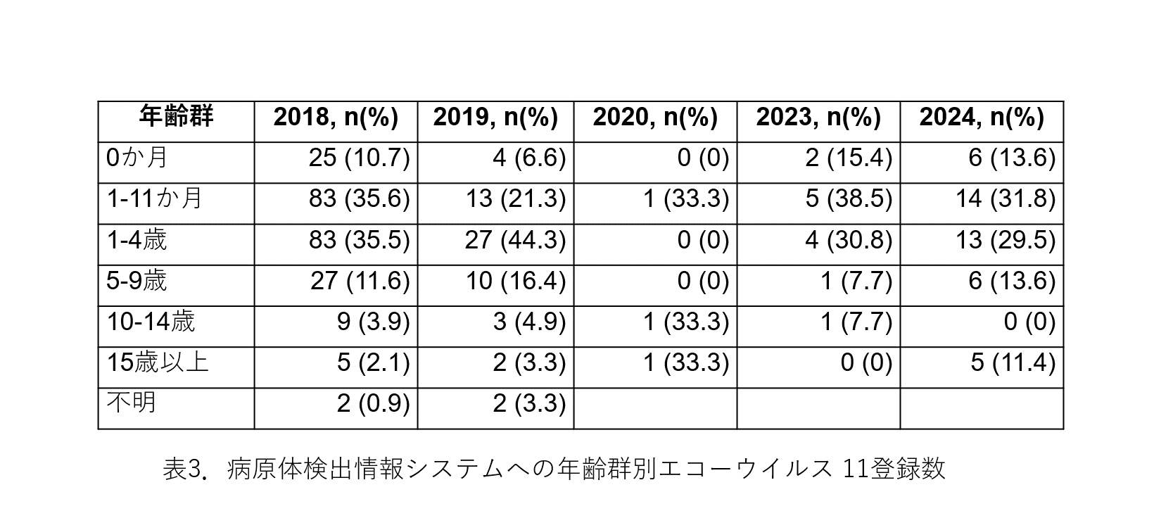 Available from: https://www.ecdc.europa.eu/en/news-events/epidemiological-update-echovirus-11-infections-neonates(外部サイトにリンクします) - Enterovirus-Echovirus 11 Infection - the European Region [Internet]. [cited 2024 Dec 7].