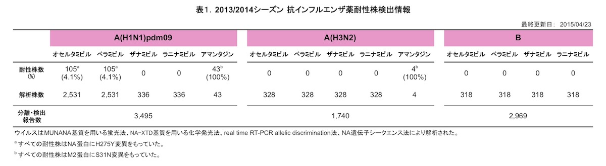 - 表1.抗インフルエンザ薬耐性株検出情報 [A(H1N1)pdm09, A(H3N2), B]