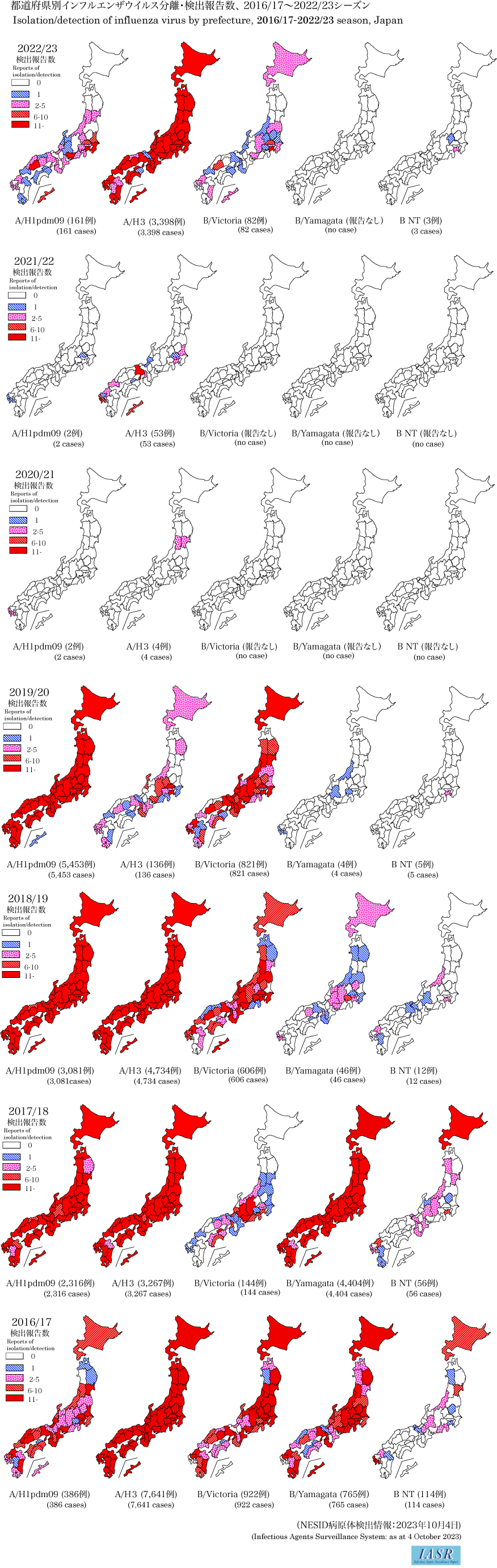 - 都道府県別、分離・検出報告数:2016/17~2022/23シーズン
