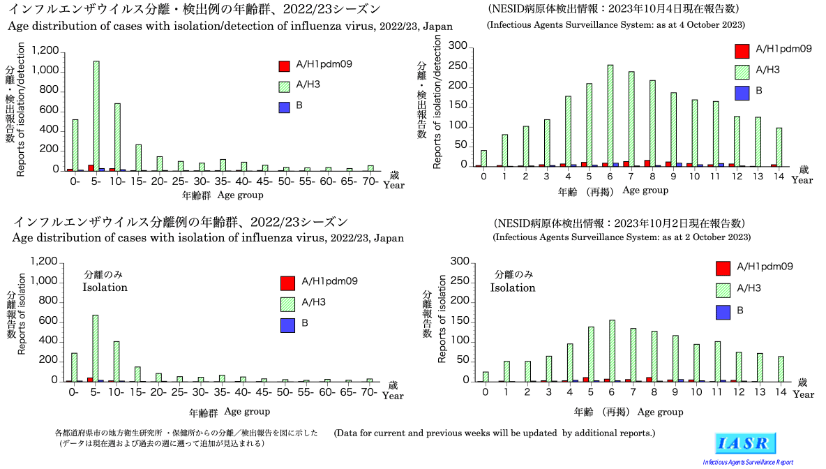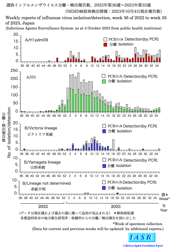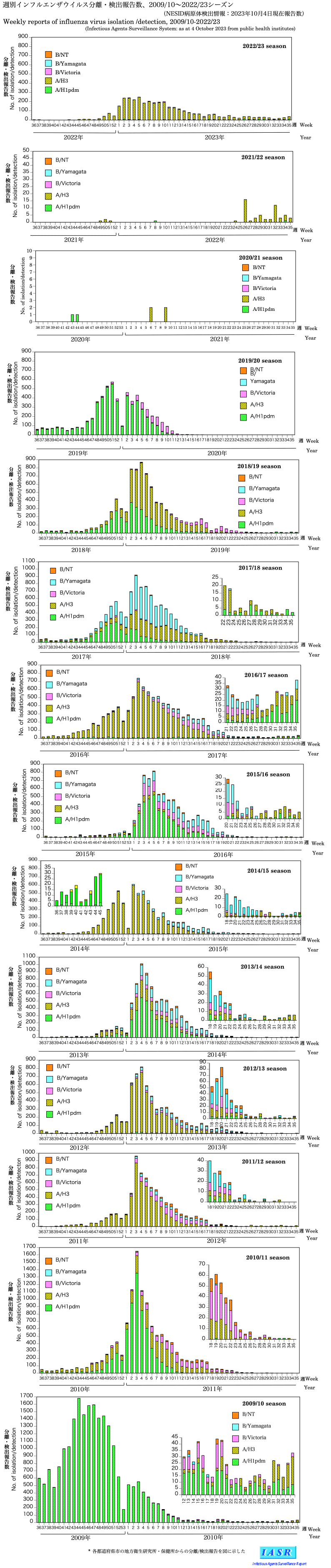 インフルエンザウイルス分離・検出報告数 2022/23シーズン(2023年10月4日現在)