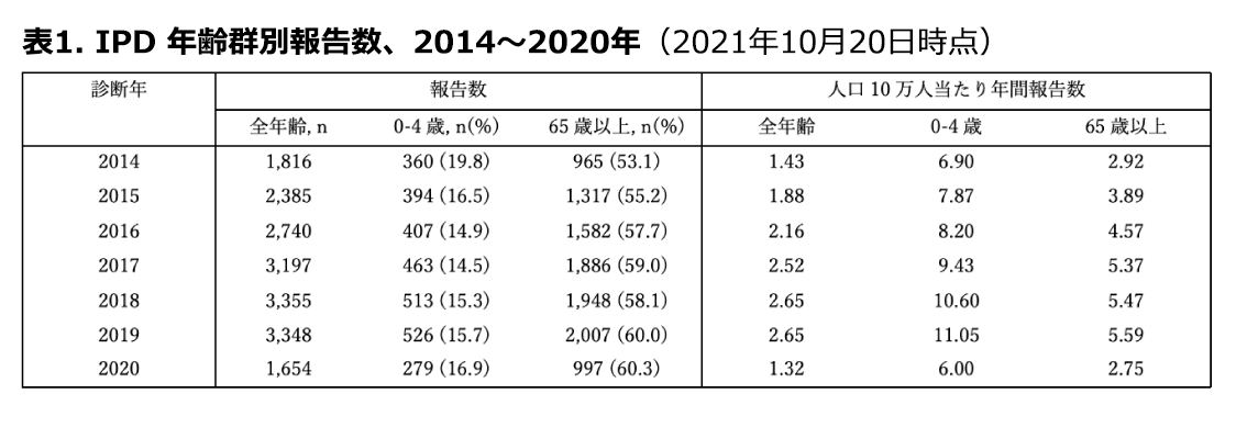 IPDは致死的疾患であり、引き続き発生動向を注視する必要がある。特に、現在実施されているワクチン接種に関して、ワクチン種類や接種対象者の変更があった場合には、それに伴う届出状況の変化を評価することが重要である。