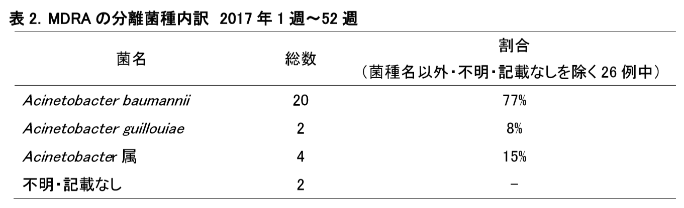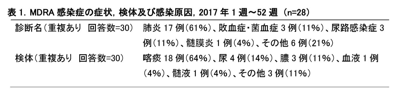 感染症法に基づく薬剤耐性アシネトバクター感染症の届出状況, 2017年