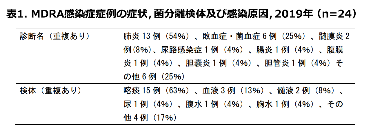感染症法に基づく薬剤耐性アシネトバクター感染症の届出状況, 2019年