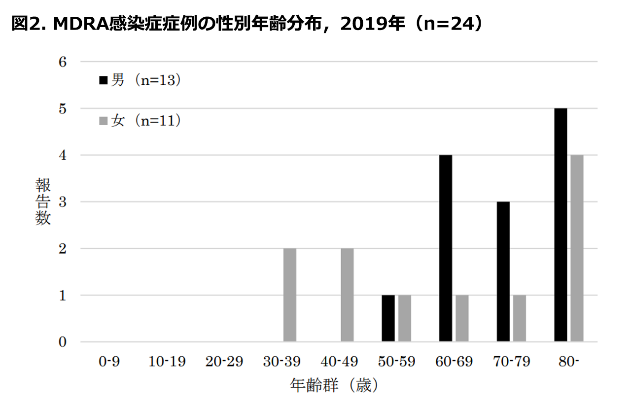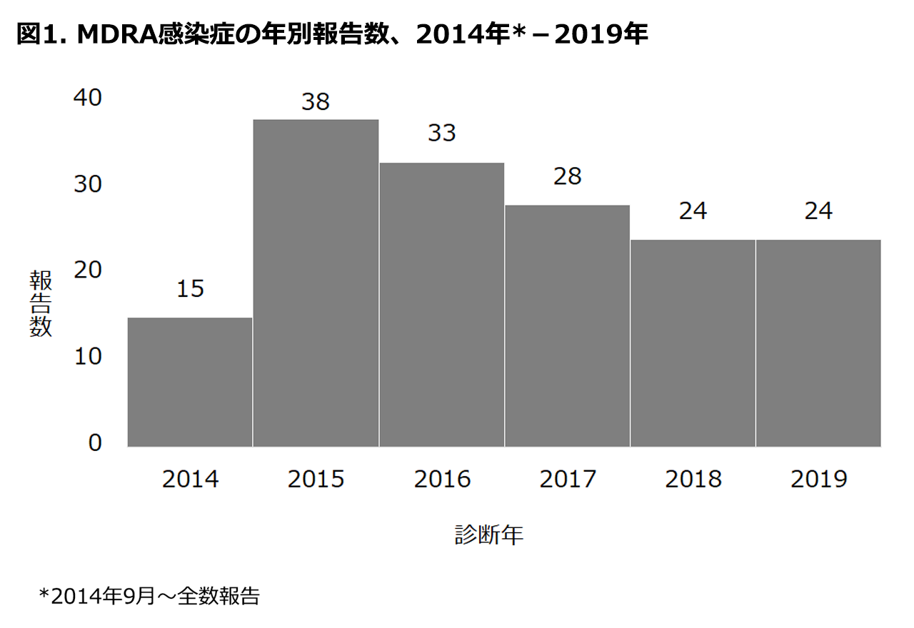 全数把握となって以降、MDRA感染症の報告数は減少傾向であったが、2019年の報告数は前年と同数であった。
