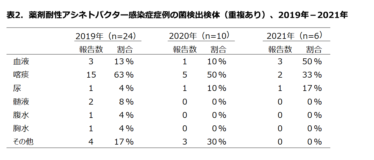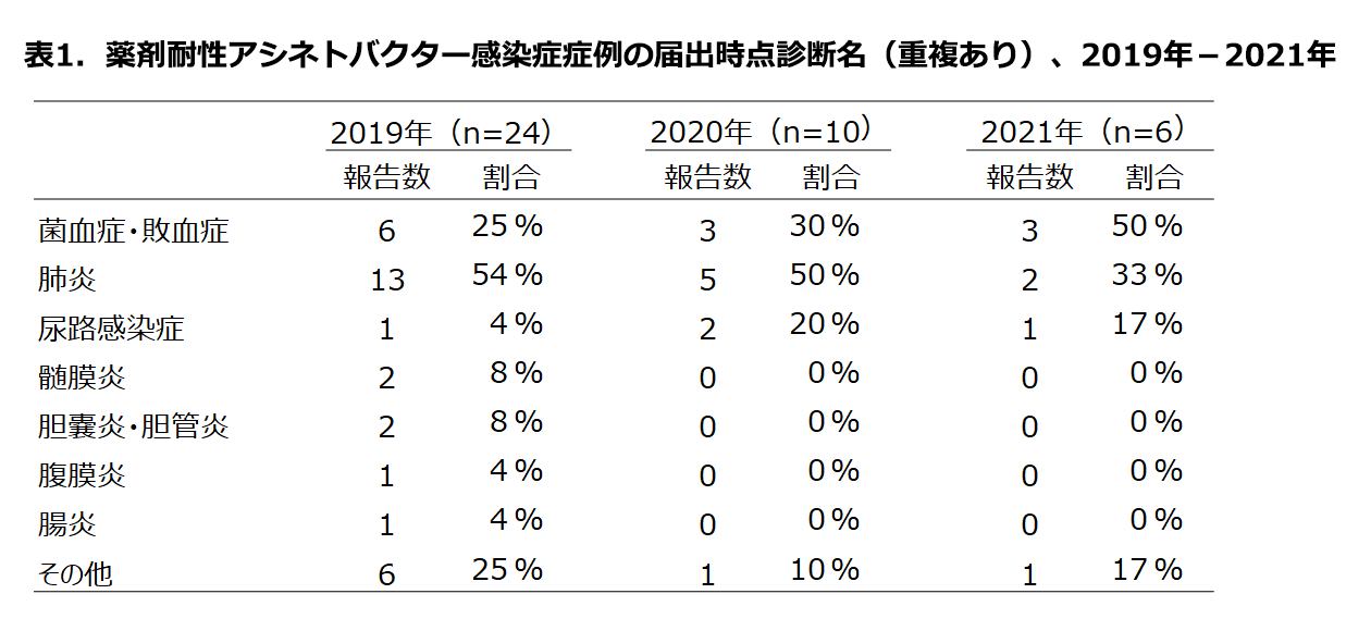 感染症法に基づく薬剤耐性アシネトバクター感染症の届出状況, 2021年
