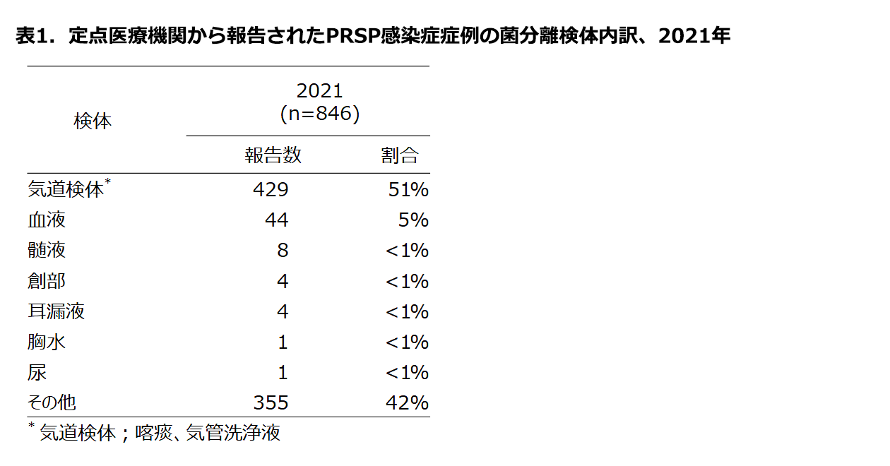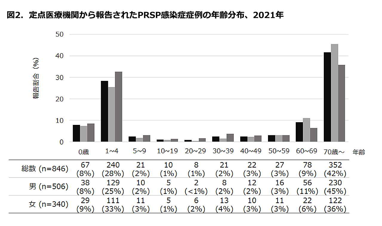 感染症法に基づくペニシリン耐性肺炎球菌(Penicillin-resistant Streptococcus pneumoniae: PRSP)感染症の届出状況、2021年