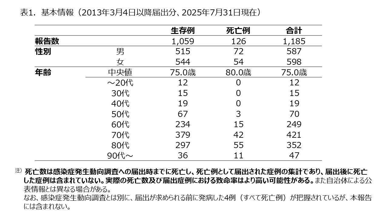 なお、感染症発生動向調査とは別に、届出が求められる前に発病した4例(すべて死亡例)が把握されているが本報告には含まれない。