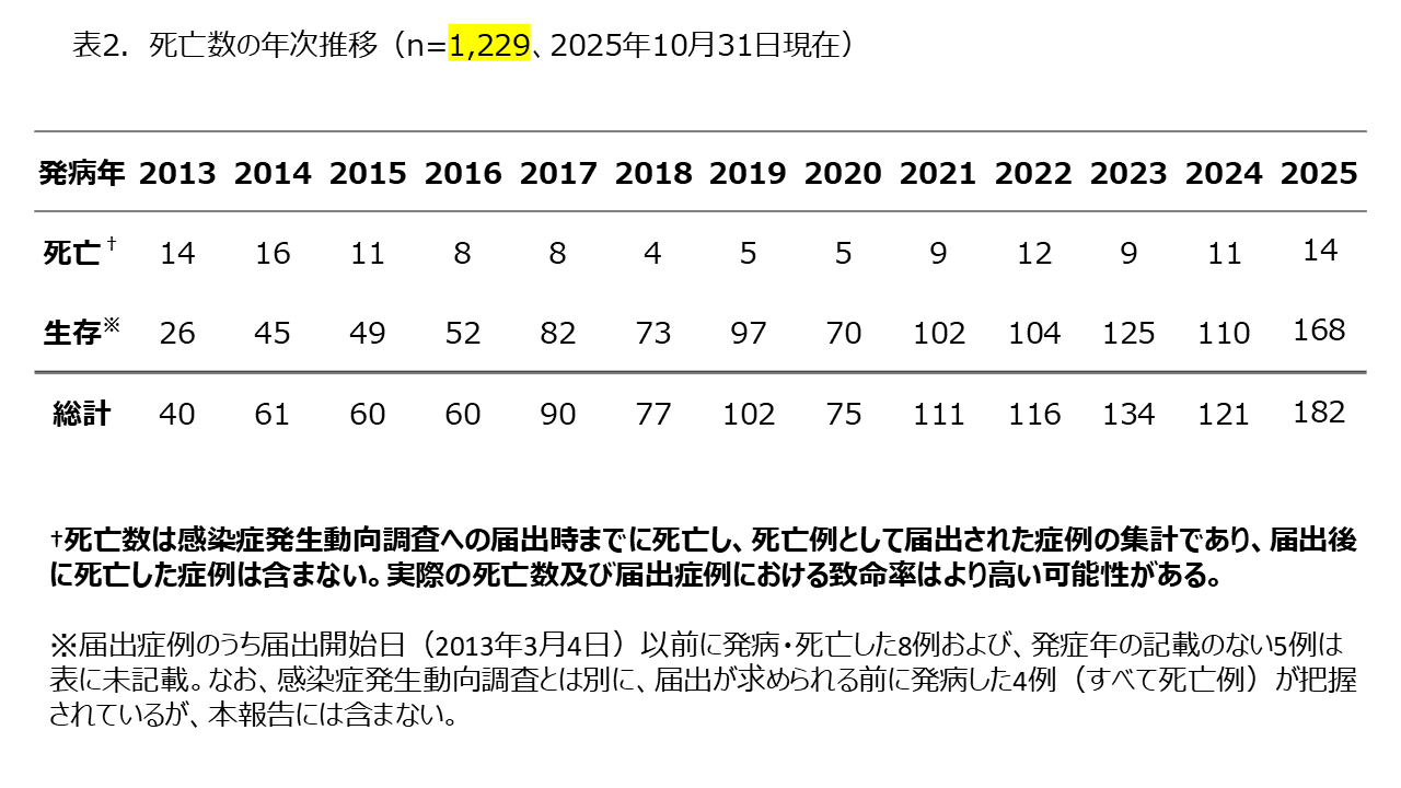 なお、感染症発生動向調査とは別に、届出が求められる前に発病した4例(すべて死亡例)が把握されているが本報告には含まれない。