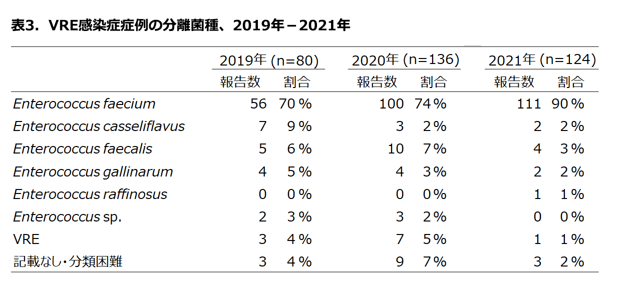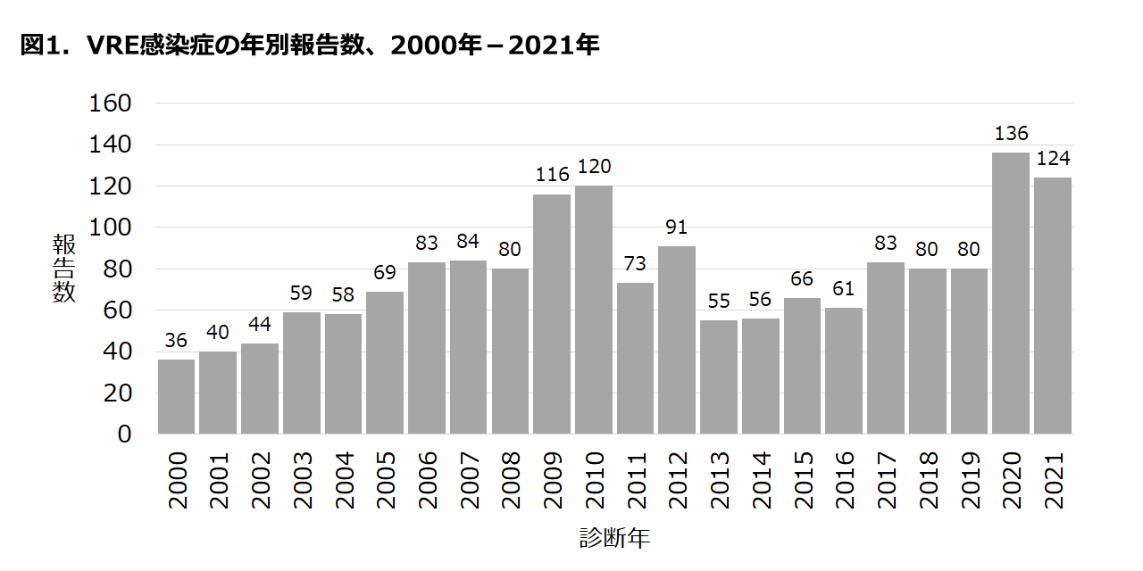 感染症法に基づくバンコマイシン耐性腸球菌(Vancomycin-resistant Enterococci: VRE)感染症の届出状況、2021年